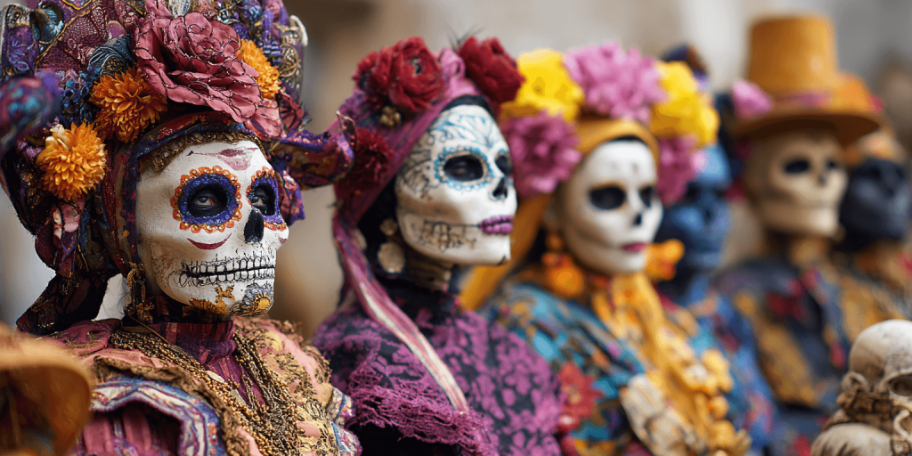 As calaveritas de azúcar constituem outro elemento paradigmático desta dimensão simbólica. Longe de representarem uma visão mórbida da morte, estas delicadas esculturas comestíveis personificam a abordagem mexicana única face à mortalidade: uma aceitação alegre e colorida do inevitável. A sua decoração elaborada, frequentemente personalizada com os nomes dos defuntos, transforma a morte numa experiência estética e sensorial, despojando-a do seu carácter aterrador.