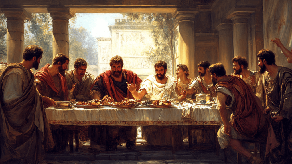 As fontes literárias greco-romanas revelam que estas refeições não eram apenas eventos religiosos formais, mas ocasiões de convívio social onde a comida era abundante, o vinho fluía livremente e a convivialidade predominava. Ao mesmo tempo, os ritos realizados sobre os alimentos tinham significado autêntico: assim como as ocasiões exigiam uma alimentação animada, também exigiam um agradecimento genuíno aos deuses.