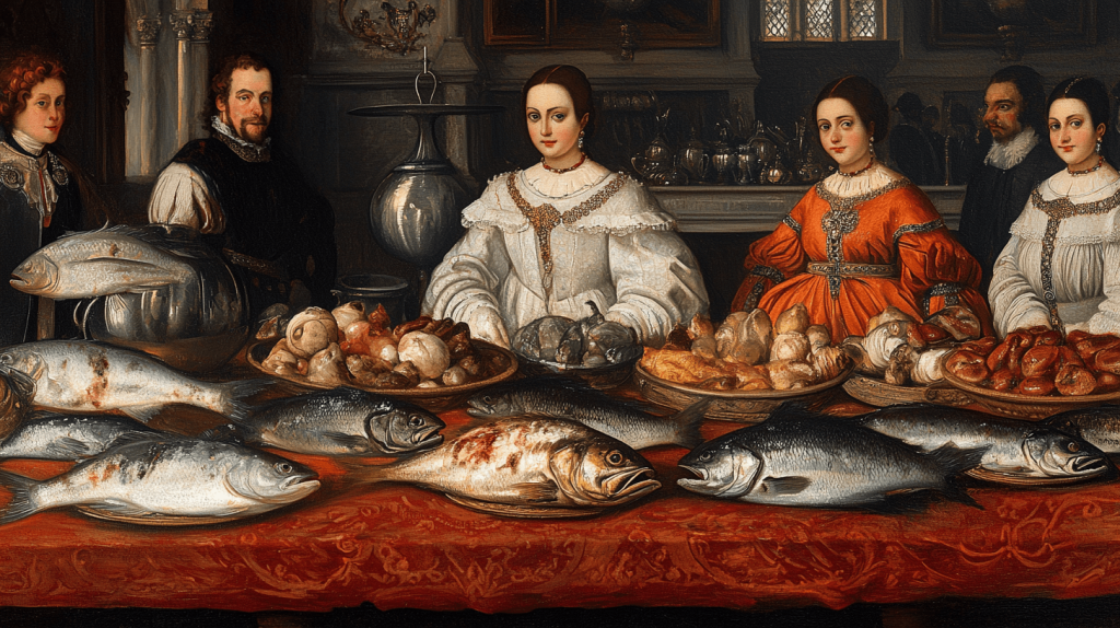 Na Europa cristã, o peixe transcendeu o simples papel de alimento para se tornar um elemento carregado de significados religiosos, económicos e sociais. Enquanto a Igreja impunha dias de abstinência de carne, criava-se um paradoxo: o que deveria ser penitência para todos transformava-se em privilégio para poucos. Como poderia um alimento destinado à mortificação da carne tornar-se símbolo de opulência? Esta contradição revela muito sobre as estruturas sociais e económicas da Europa pré-moderna, onde o acesso ao peixe de qualidade estabelecia fronteiras claras entre classes sociais, transformando a mesa num palco onde se representavam as hierarquias do poder.